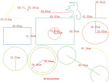 圖層技術可保證原始圖像不被破壞的情況下進行各種二維測量:點坐標、直線距離、角度、弧度、圓形面積、橢圓面積、周長、半徑、直徑、矩形面積、矩形周長、同心圓、平行線、垂直線、任意多邊形周長、任意多邊形面積;